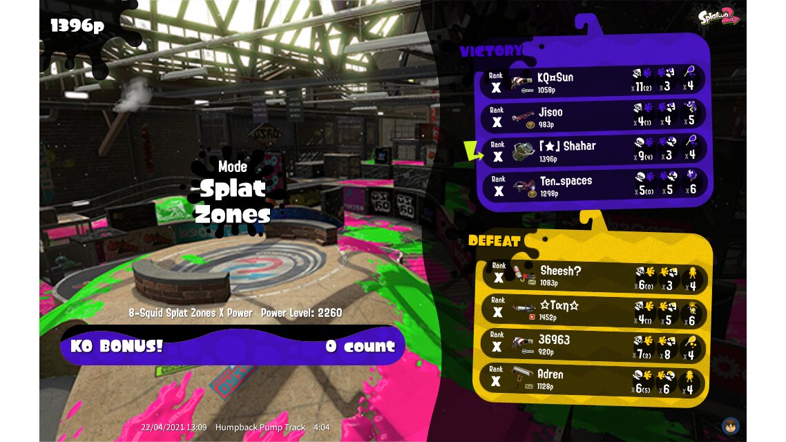 | Mode | Splat Zones - Ranked Battle | ||||||||||||||||||||||||||||||||||