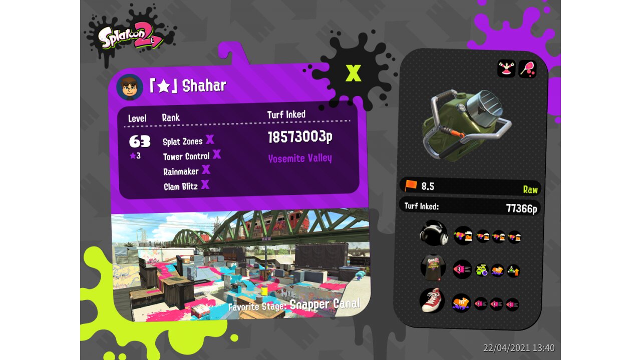 | SplatNet Battle # | 20,161 | ||||||||||||||||||||||||||||||||||