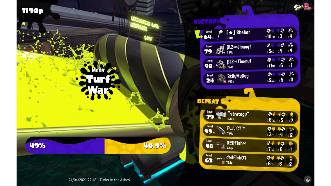 | Mode | Turf War - Private Battle | ||||||||||||||||||||||||||||||||||||||||