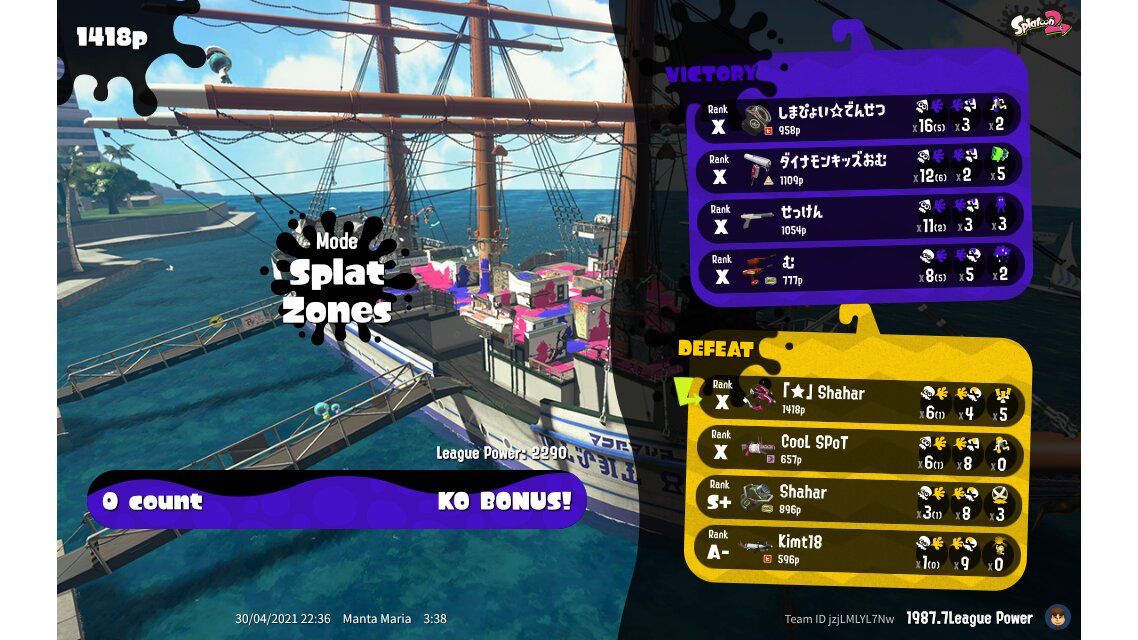 | Mode | Splat Zones - League Battle (Quad) | ||||||||||||||||||||||||||||||||||||||||