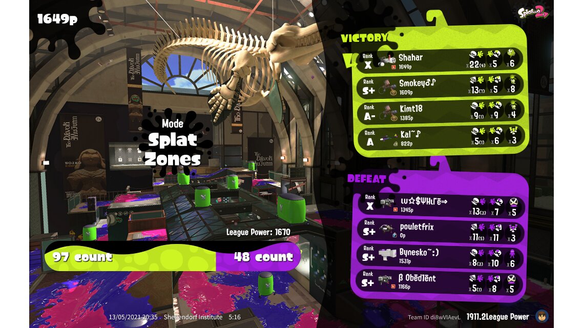 | Mode | Splat Zones - League Battle (Twin) | ||||||||||||||||||||||||||||||||||