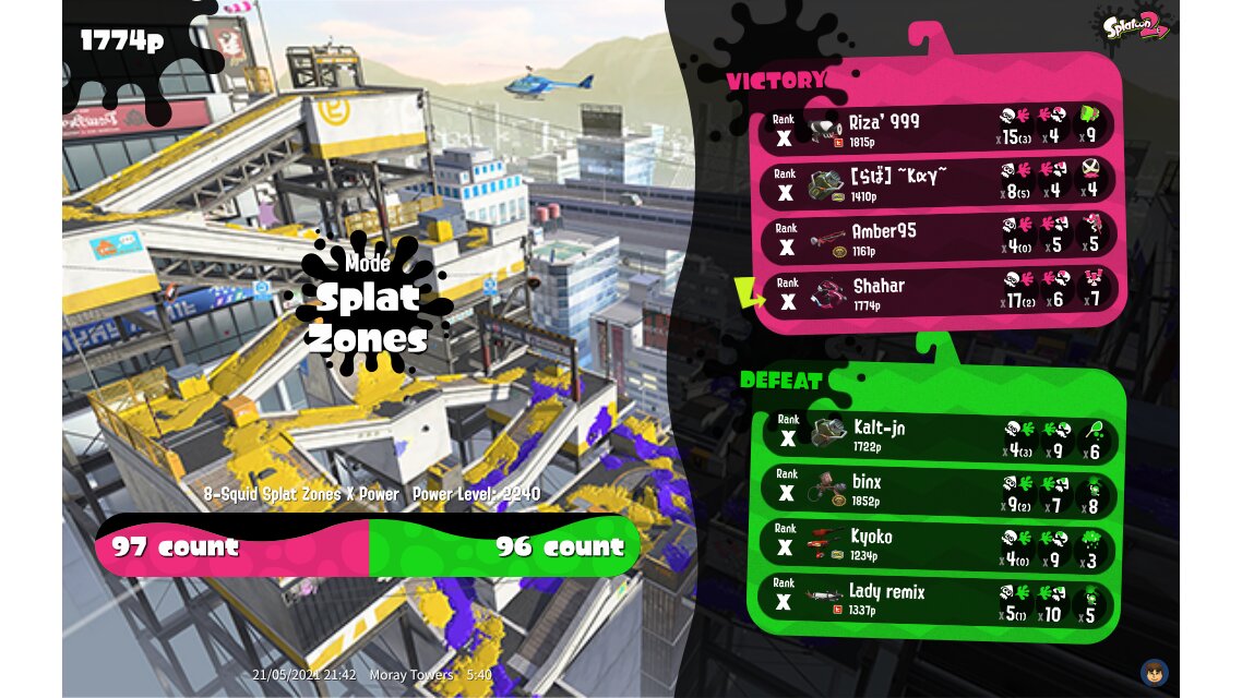 | Mode | Splat Zones - Ranked Battle | ||||||||||||||||||||||||||||||||||||||||