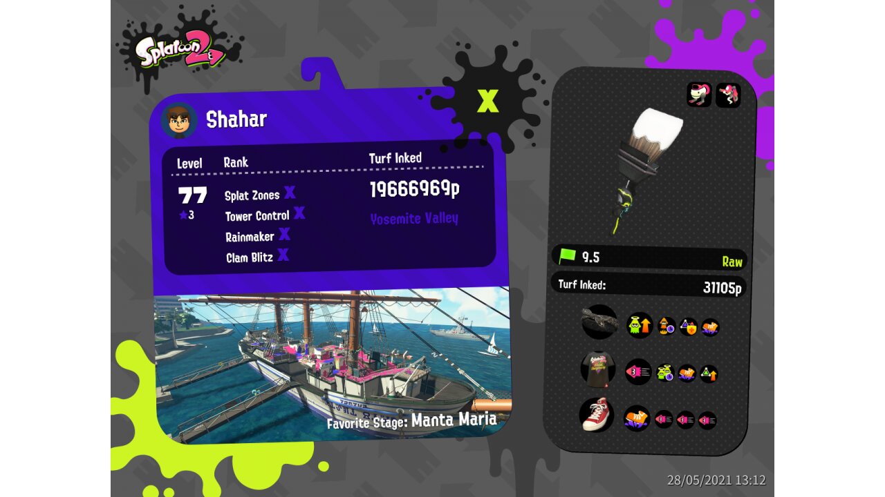 | SplatNet Battle # | 21,345 | ||||||||||||||||||||||||||||||||||||||||