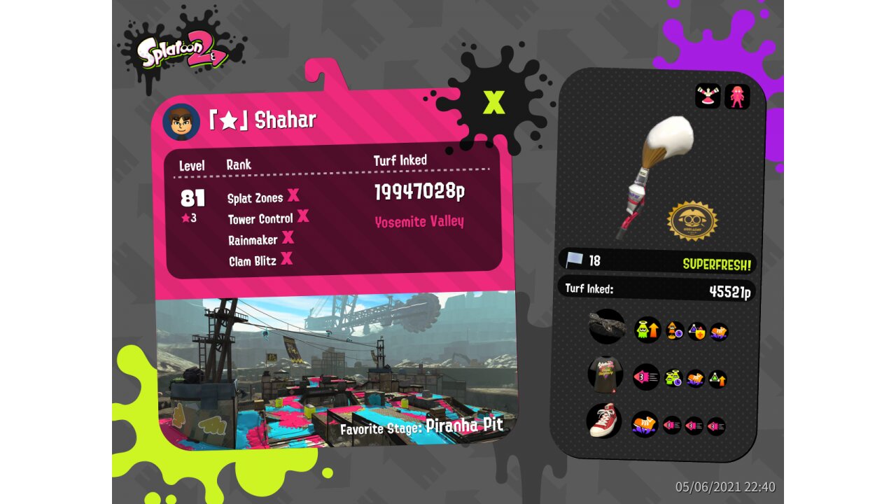 | SplatNet Battle # | 21,664 | ||||||||||||||||||||||||||||||||||||||||