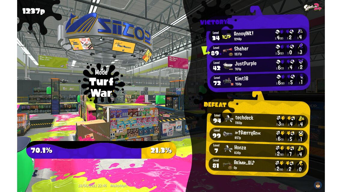| Mode | Turf War - Regular Battle | ||||||||||||||||||||||||||||||||||||||||