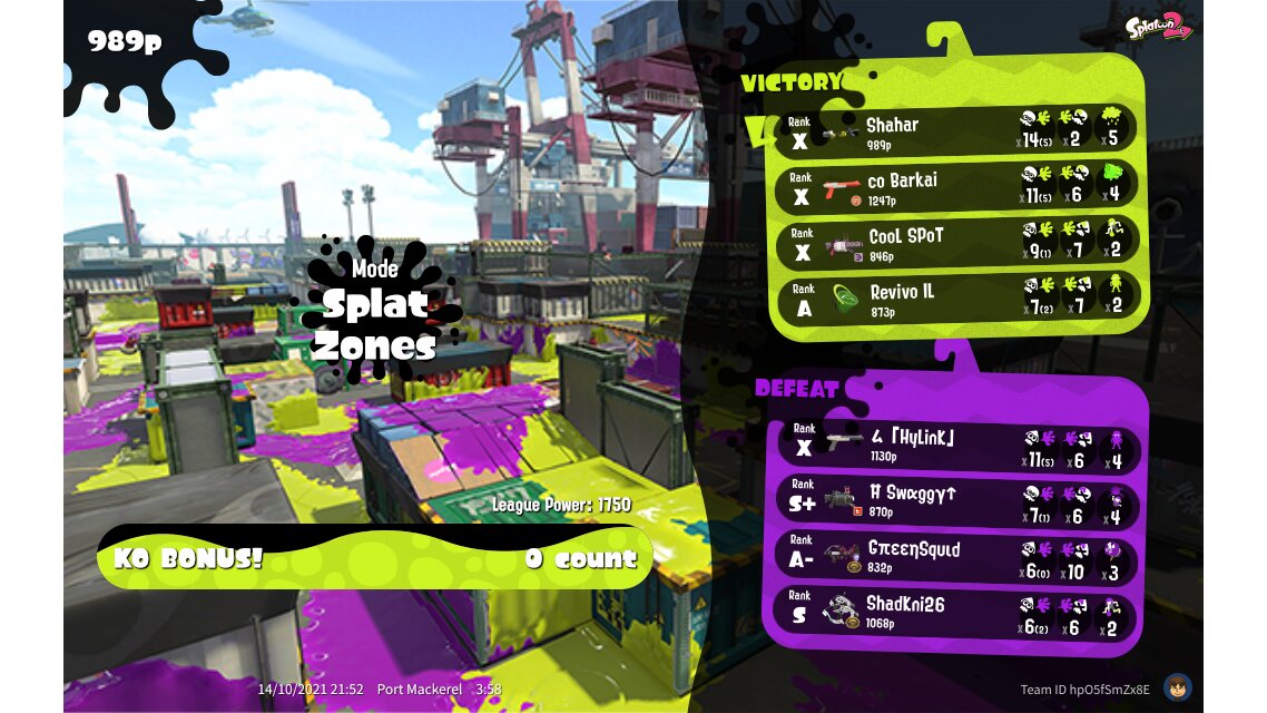 | Mode | Splat Zones - League Battle (Quad) | ||||||||||||||||||||||||||||||||||||||||