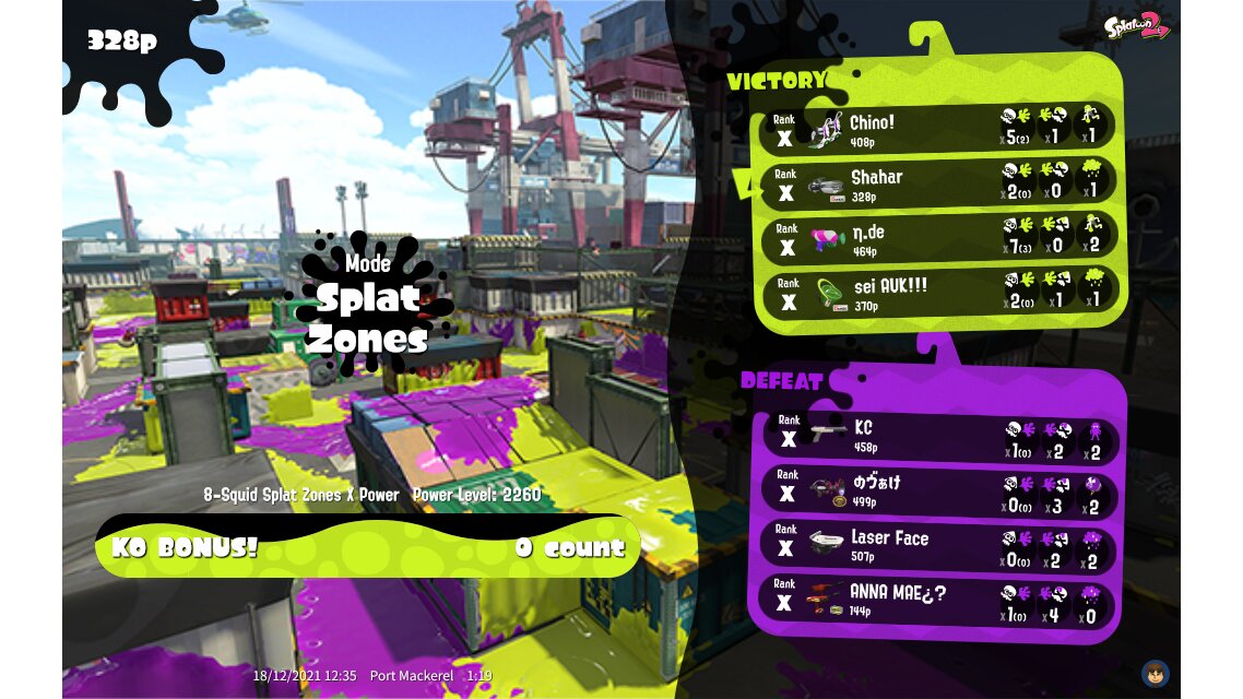 | Mode | Splat Zones - Ranked Battle | ||||||||||||||||||||||||||||