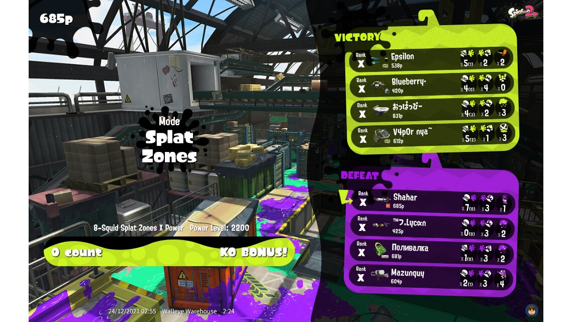 | Mode | Splat Zones - Ranked Battle | ||||||||||||||||||||||||||||