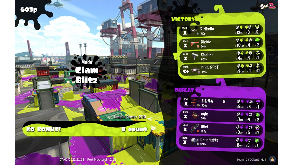 | Mode | Clam Blitz - League Battle (Twin) | |||||||||||||||||||||||||||||||||||||||||||