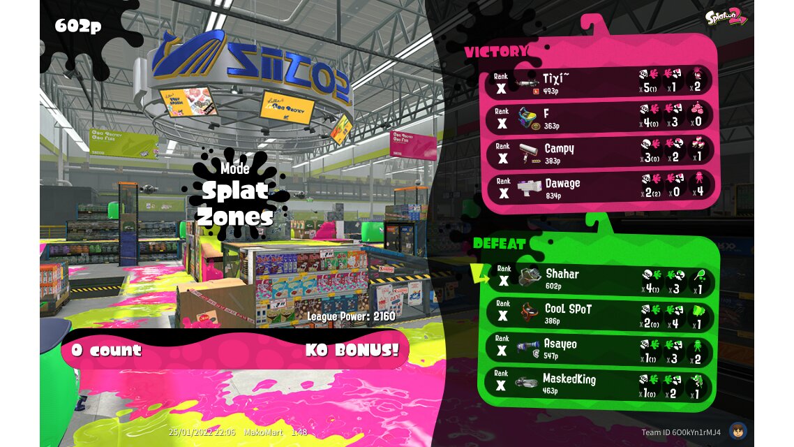 | Mode | Splat Zones - League Battle (Twin) | |||||||||||||||||||||||||||||||||||||||||||