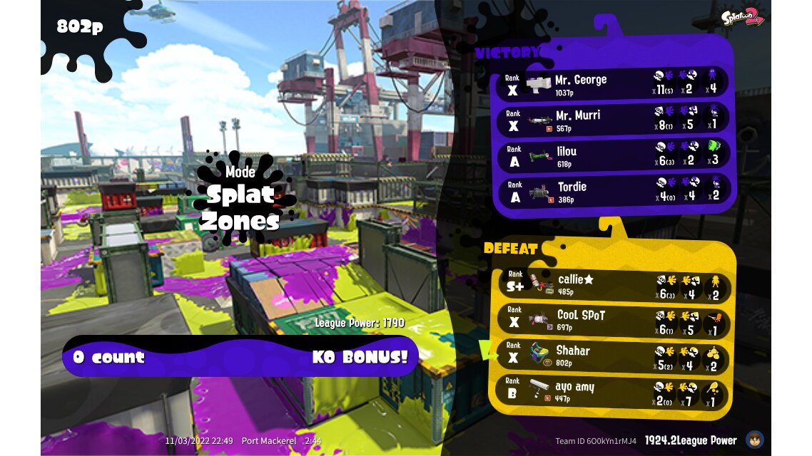 | Mode | Splat Zones - League Battle (Twin) | |||||||||||||||||||||||||||||||||||||||||||
