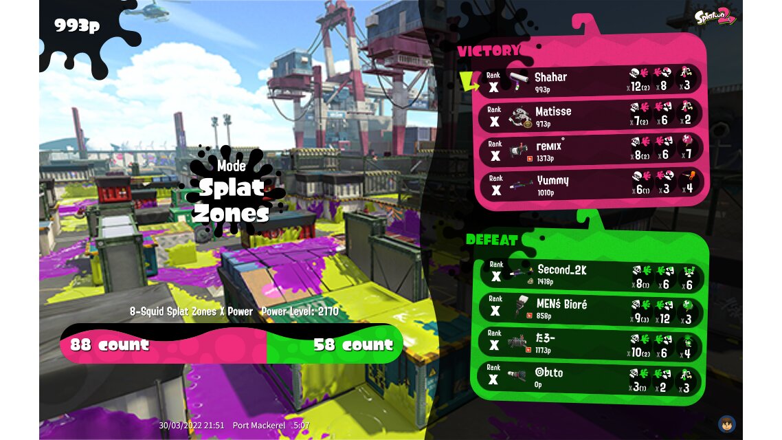 | Mode | Splat Zones - Ranked Battle | |||||||||||||||||||||||||||||||||||||||||||