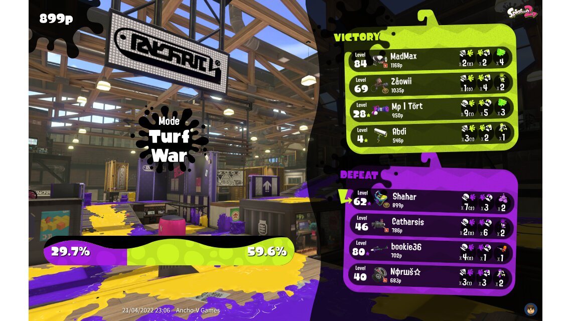 | Mode | Turf War - Regular Battle | |||||||||||||||||||||||||||||||||||||