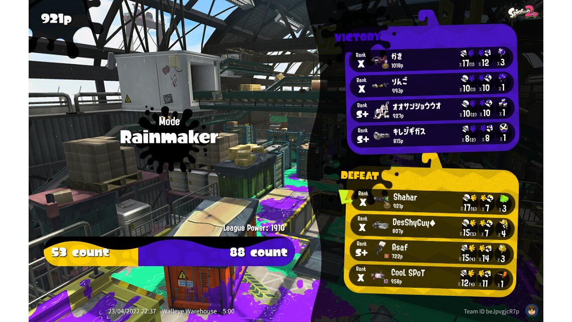 | Mode | Rainmaker - League Battle (Quad) | |||||||||||||||||||||||||||||||||||||