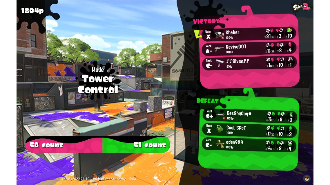 | Name | Weapon | Level | Rank | Inked | k+a/sp | k/d |