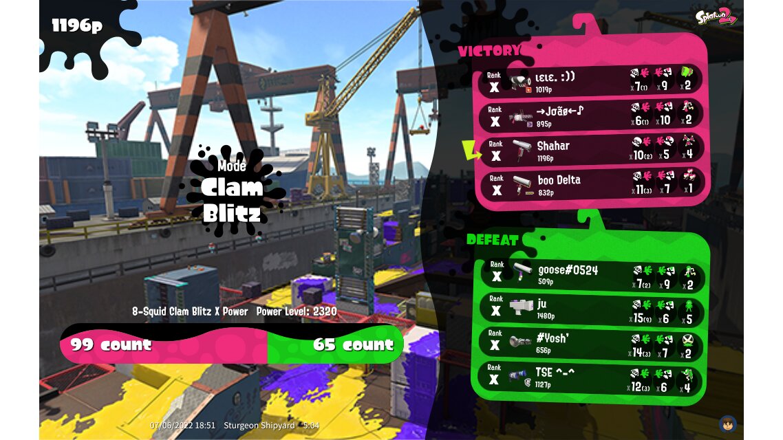 | Mode | Clam Blitz - Ranked Battle | |||||||||||||||||||||||||||||||||||||||||||
