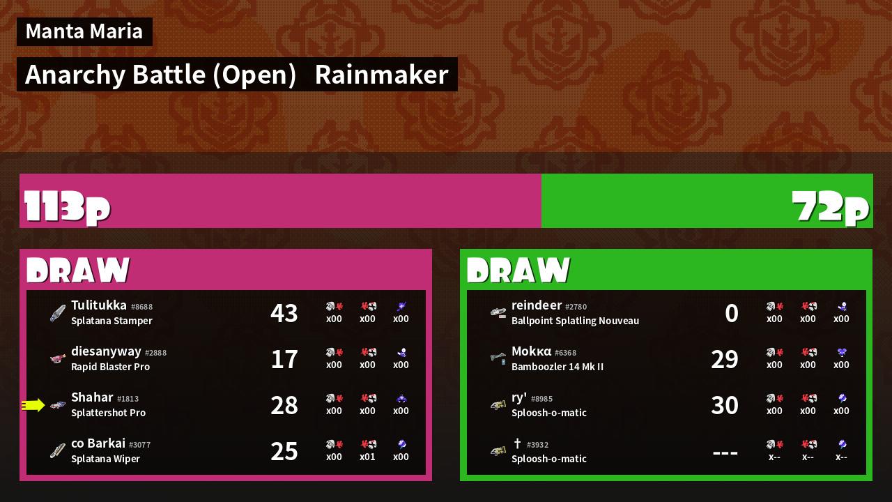 | Mode | Rainmaker - Anarchy Battle (Open) |