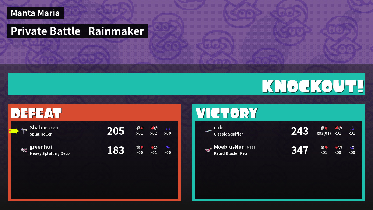 | Weapon | Splat Roller ( Curling Bomb / Big Bubbler) |