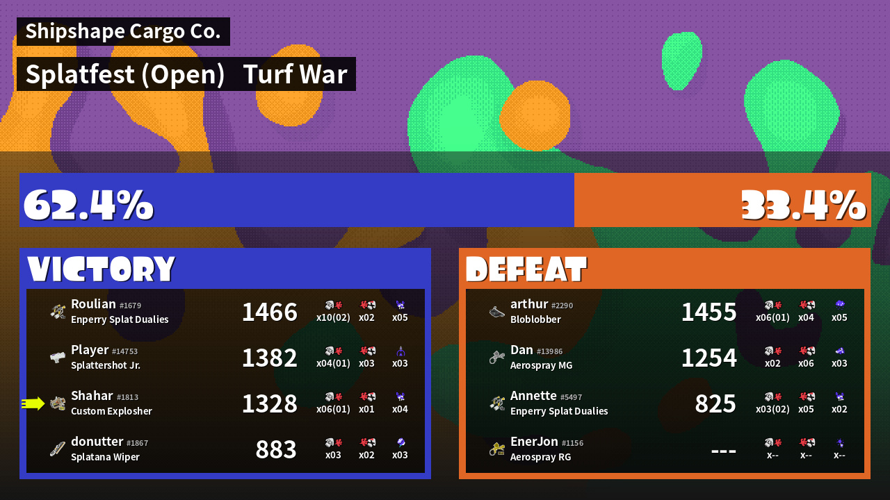 | Weapon | Custom Explosher ( Splash Wall / Triple Splashdown) |