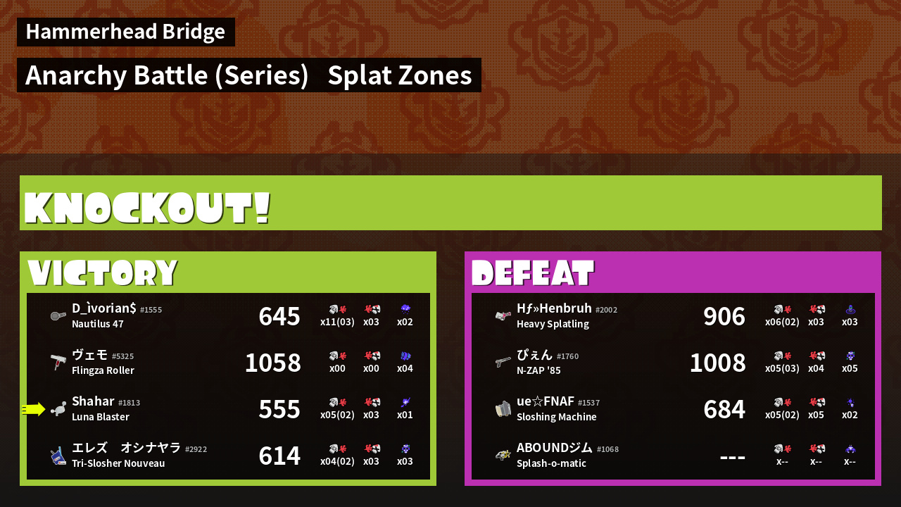 | Medals | #1 Ink Consumer #2 Overall Splatter #2 Splat Zone Guard | ||
