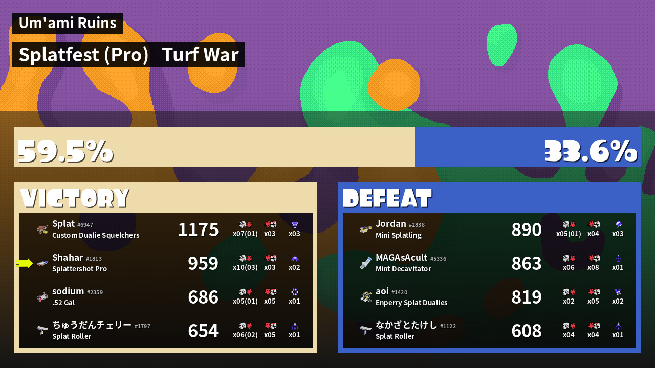| Medals | #1 Overall Splatter #1 Popular Target #1 Enemy Splatter |