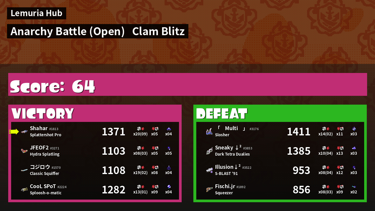 | Mode | Clam Blitz - Anarchy Battle (Open) |