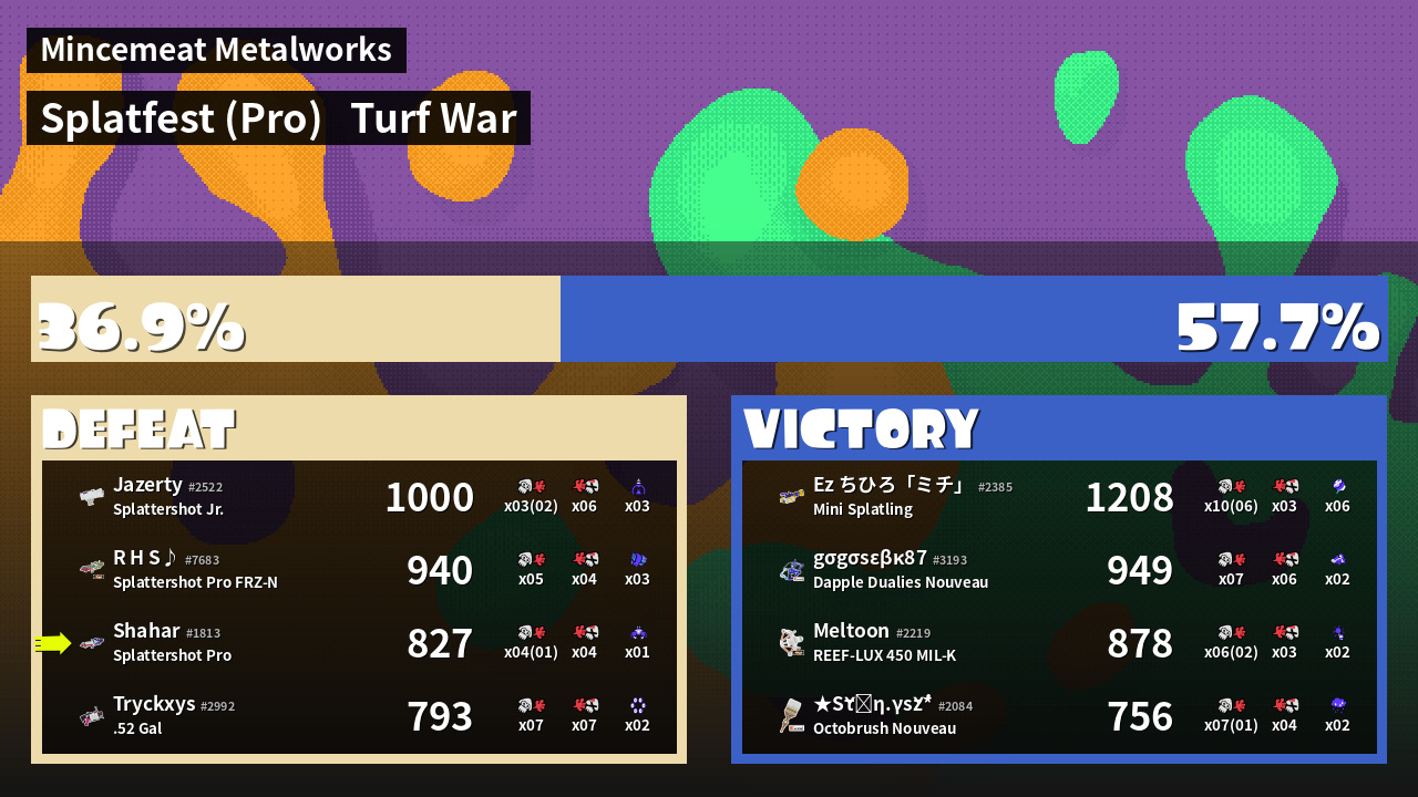 | Weapon | Splattershot Pro ( Angle Shooter / Crab Tank) |