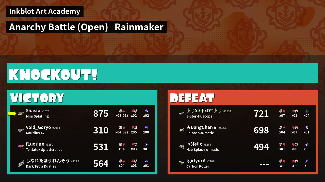 | Mode | Rainmaker - Anarchy Battle (Open) | ||