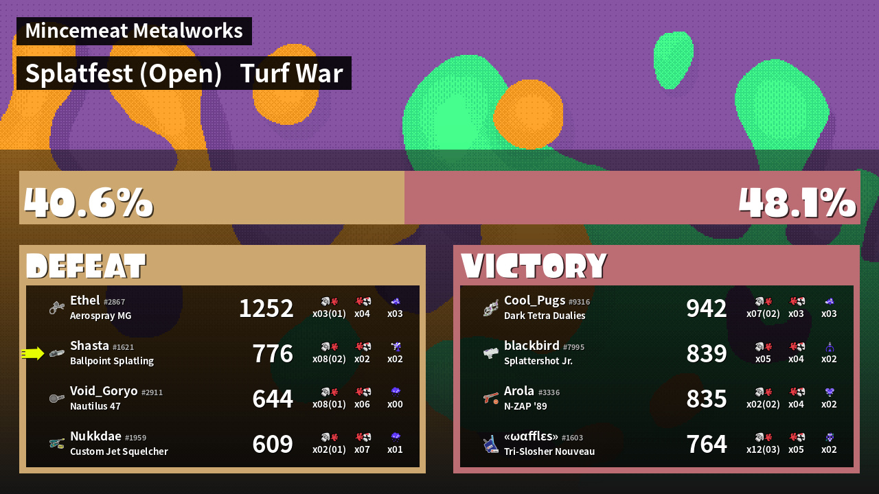 | Medals | #1 Overall Splatter #1 Super Jump Spot #1 Splat Assister | ||