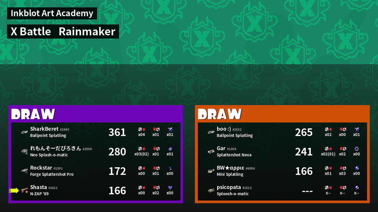 | Name | Weapon | X | Inked |  k |  d | KR | Sp | |