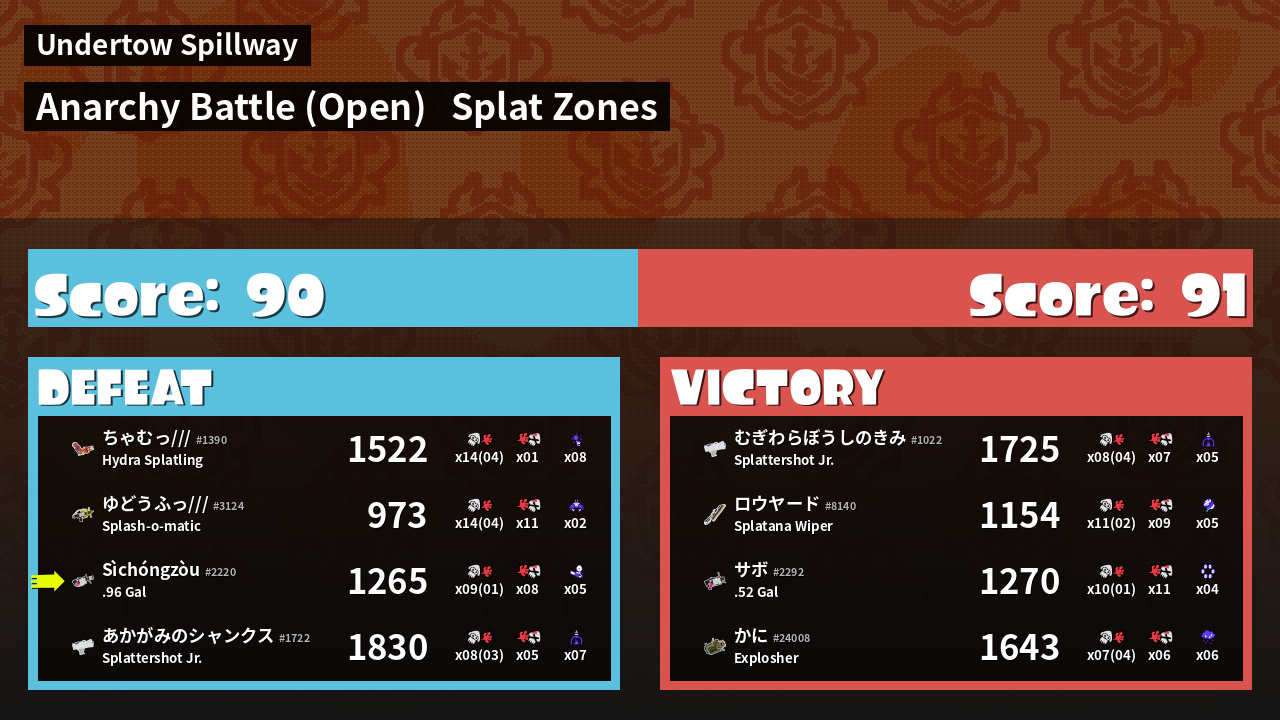 | Mode | Splat Zones - Anarchy Battle (Open) | ||