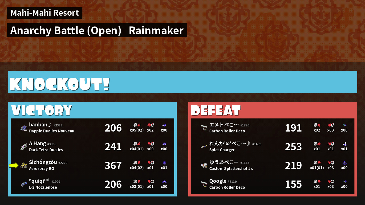 | Mode | Rainmaker - Anarchy Battle (Open) | ||