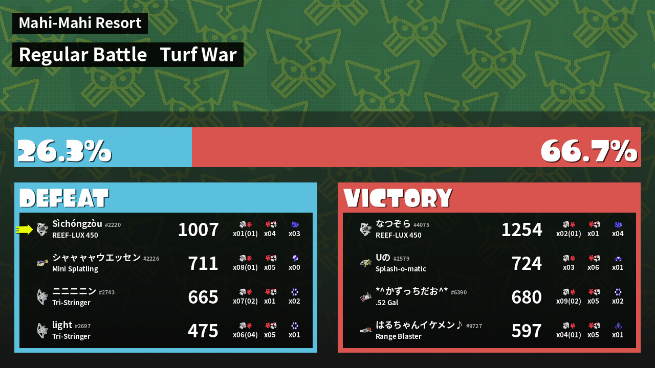 | Weapon | REEF-LUX 450 ( Curling Bomb / Tenta Missiles) | ||