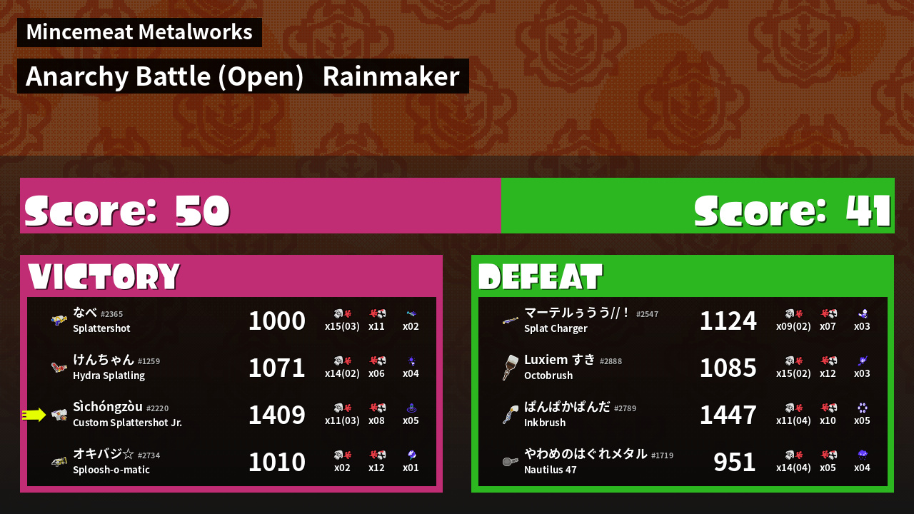| Mode | Rainmaker - Anarchy Battle (Open) | ||
