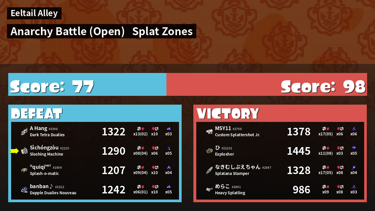 | Mode | Splat Zones - Anarchy Battle (Open) | ||