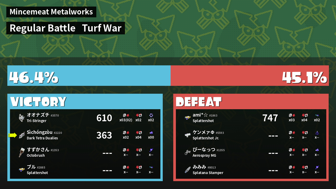 | Medals | #1 Super Jump Spot #1 Ground Traveler #1 Ink Consumer | ||