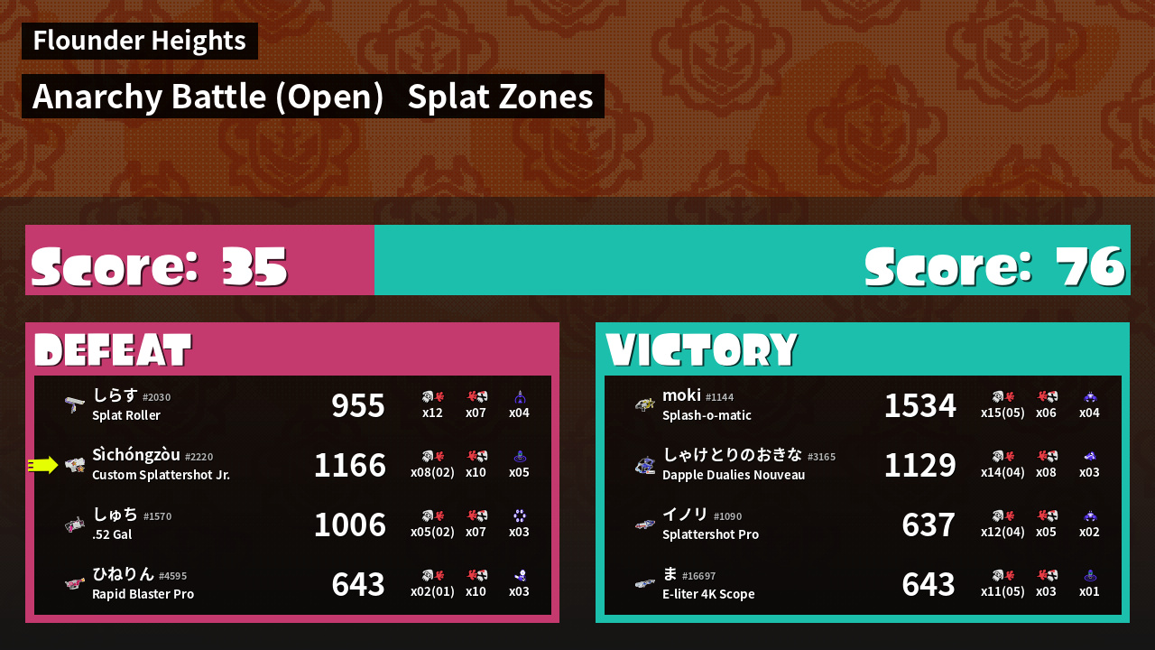 | Mode | Splat Zones - Anarchy Battle (Open) | ||