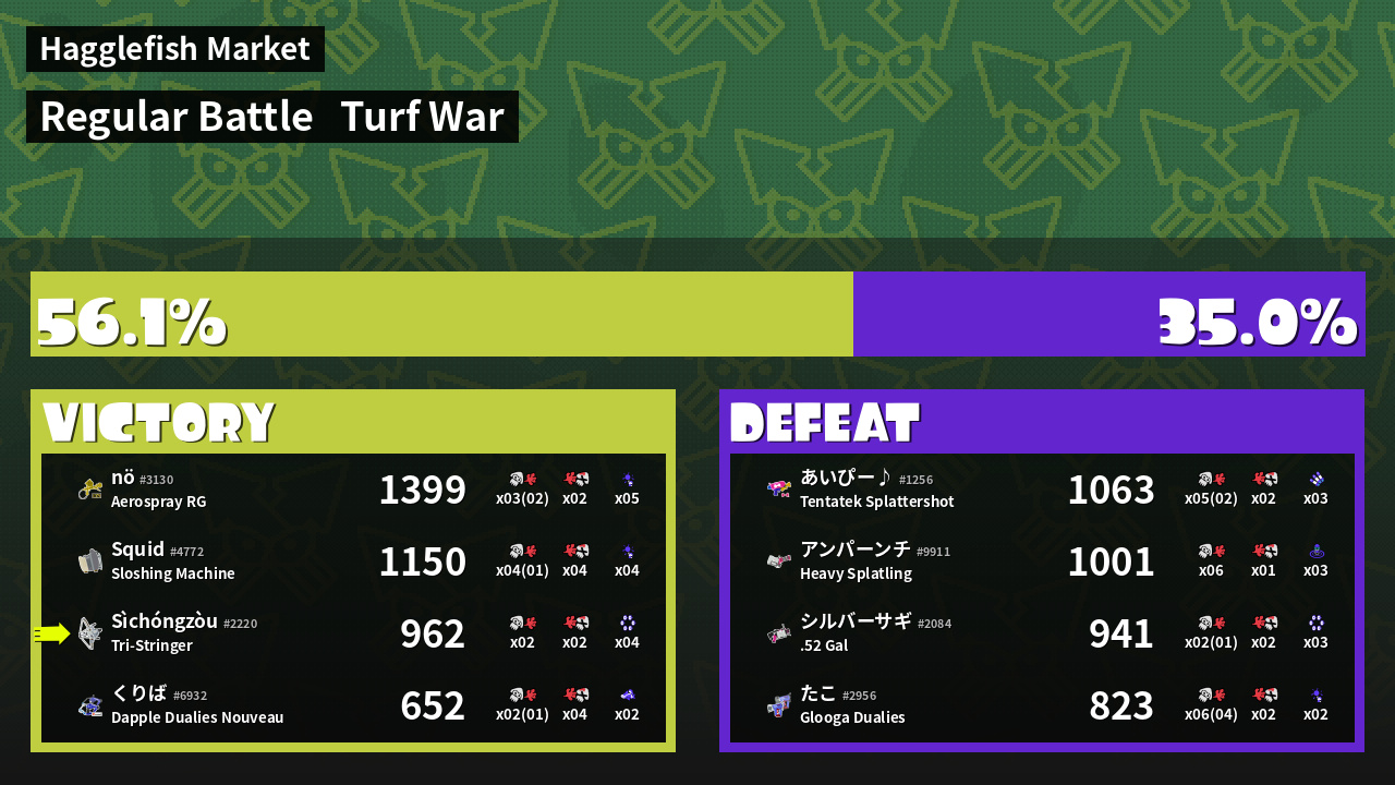 | Medals | First Splat! #1 Killer Wail 5.1 User #2 Enemy Splatter | ||