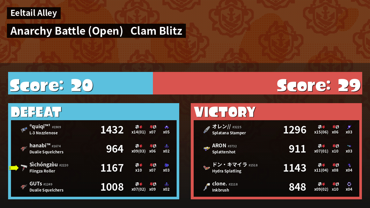 | Mode | Clam Blitz - Anarchy Battle (Open) | ||
