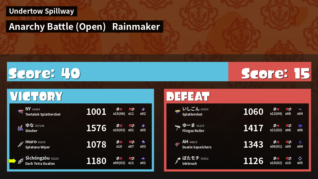 | Mode | Rainmaker - Anarchy Battle (Open) | ||