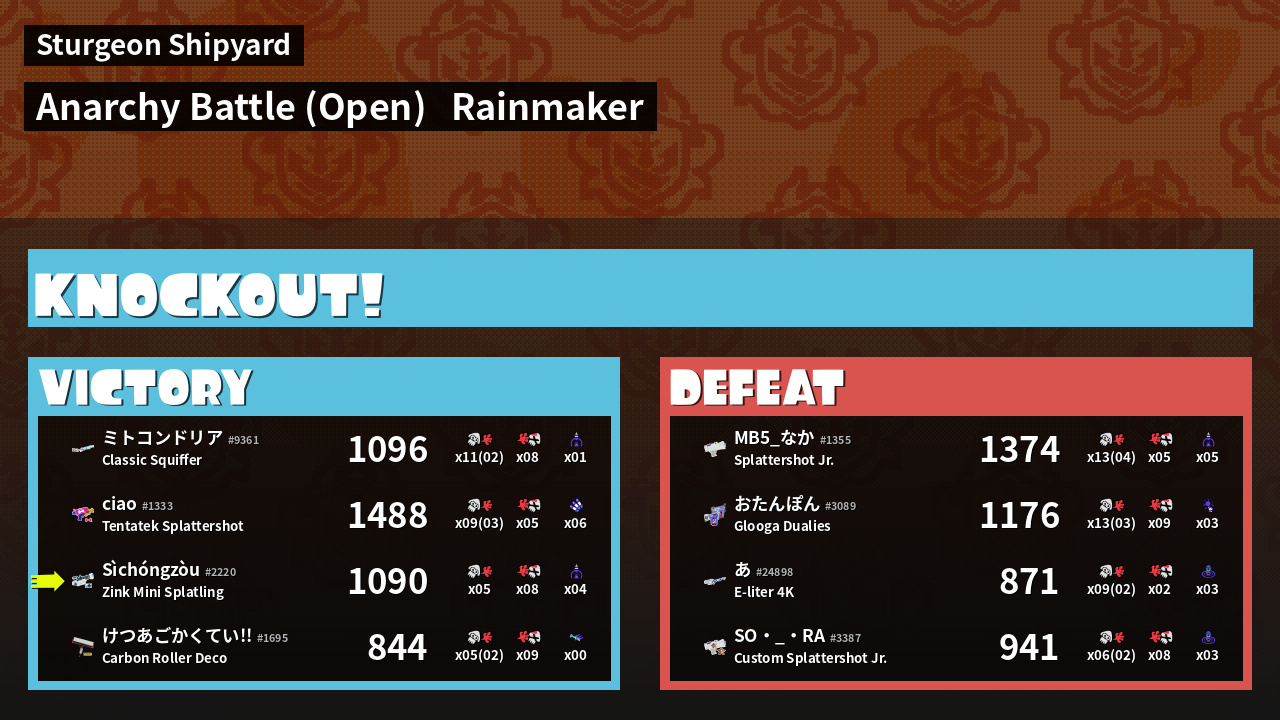 | Mode | Rainmaker - Anarchy Battle (Open) | ||