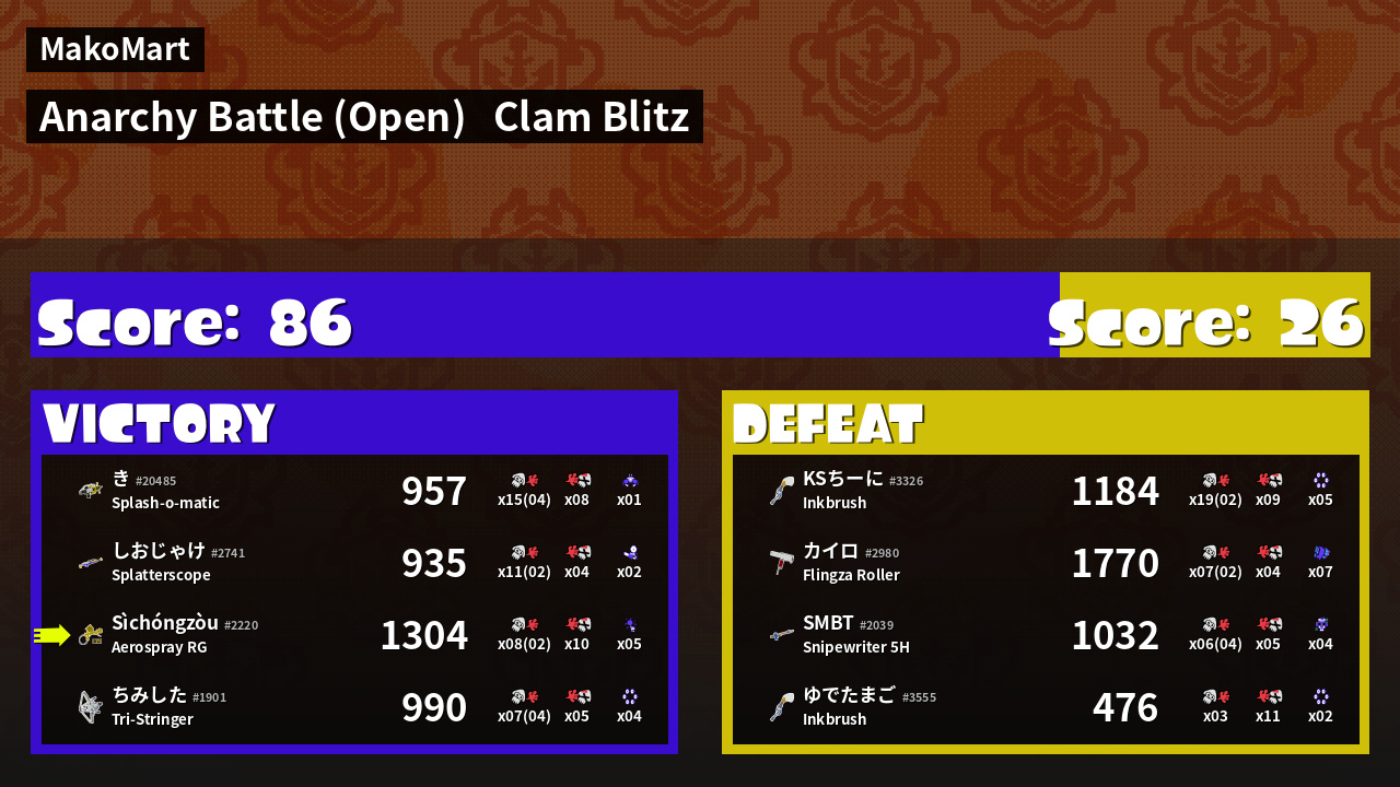 | Mode | Clam Blitz - Anarchy Battle (Open) | ||