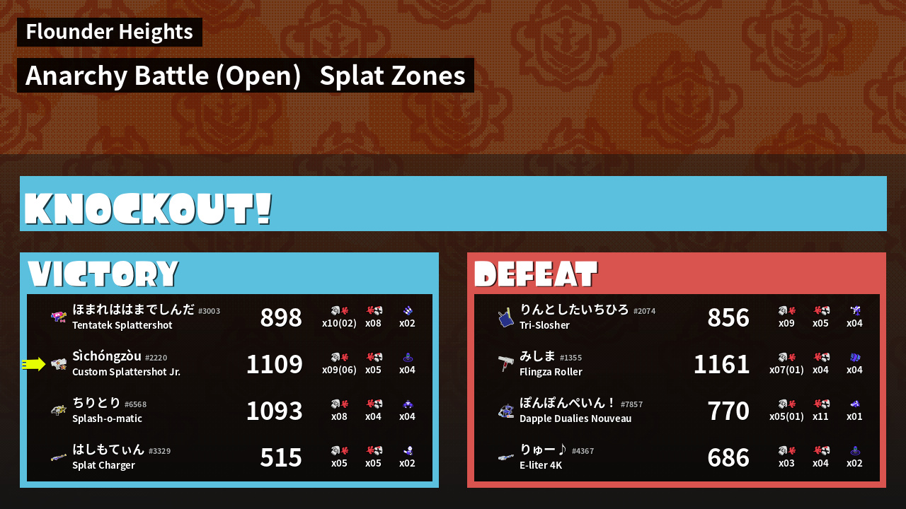 | Mode | Splat Zones - Anarchy Battle (Open) | ||