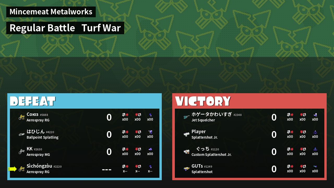 | Mode | Turf War - Regular Battle | ||