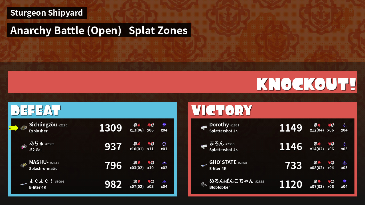 | Mode | Splat Zones - Anarchy Battle (Open) | ||