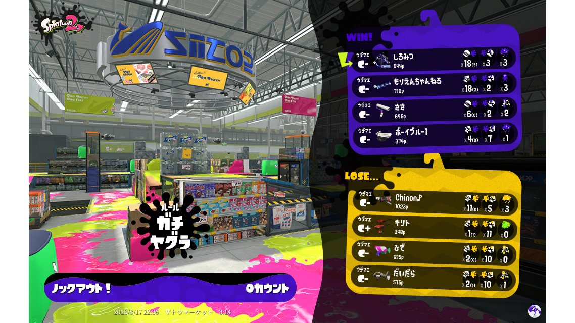 | Name | Weapon | Level | Rank | Inked | k+a/sp | k/d |