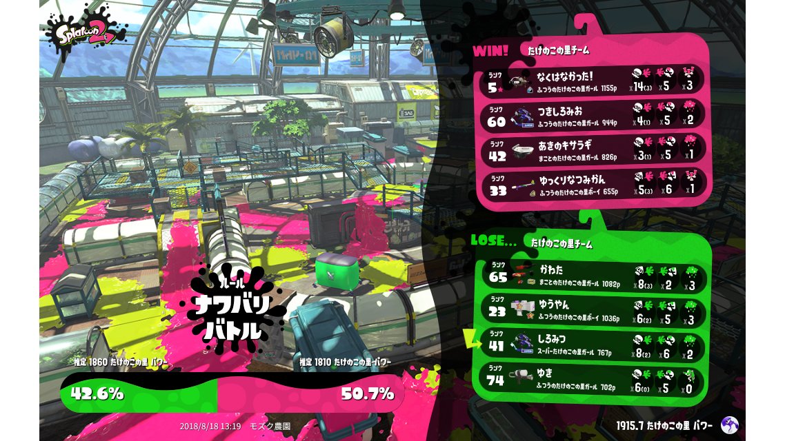 | Splatfest Title | たけのこの里 Defender 37 → たけのこの里 Defender 39 | |||||||||||||||||||||||||||||||