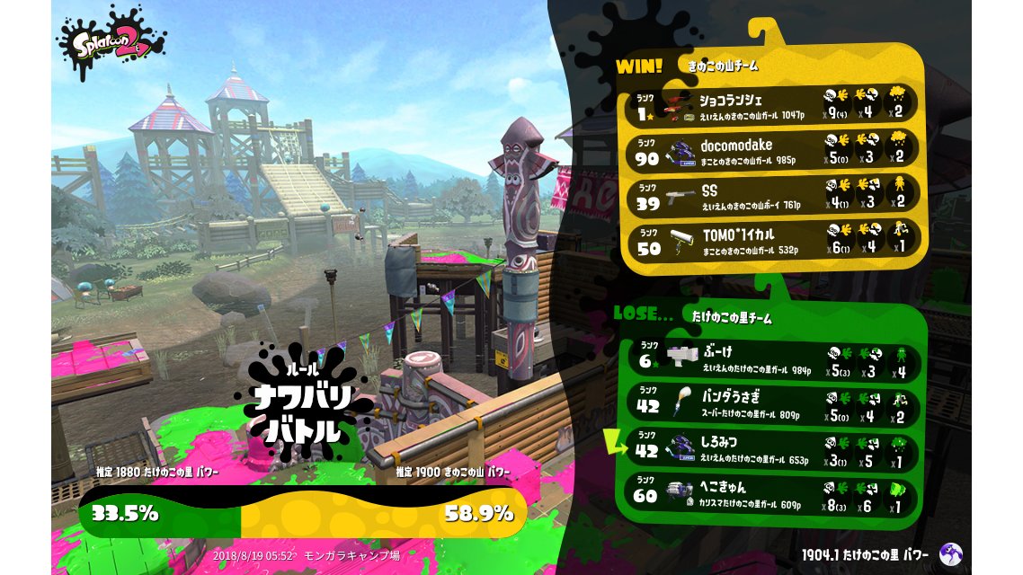 | Splatfest Title | たけのこの里 Queen → たけのこの里 Queen | |||||||||||||||||||||||||||||||