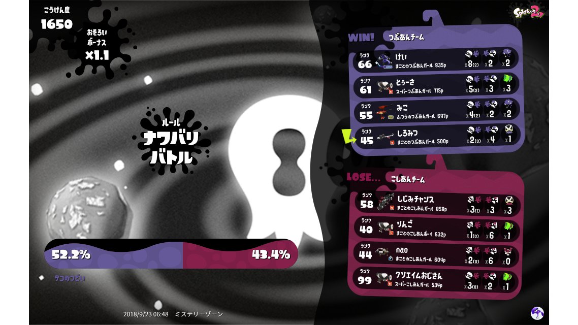 | Splatfest Title | つぶあん Fiend 144 → つぶあん Fiend 152 | |||||||||||||||||||||||||||||||