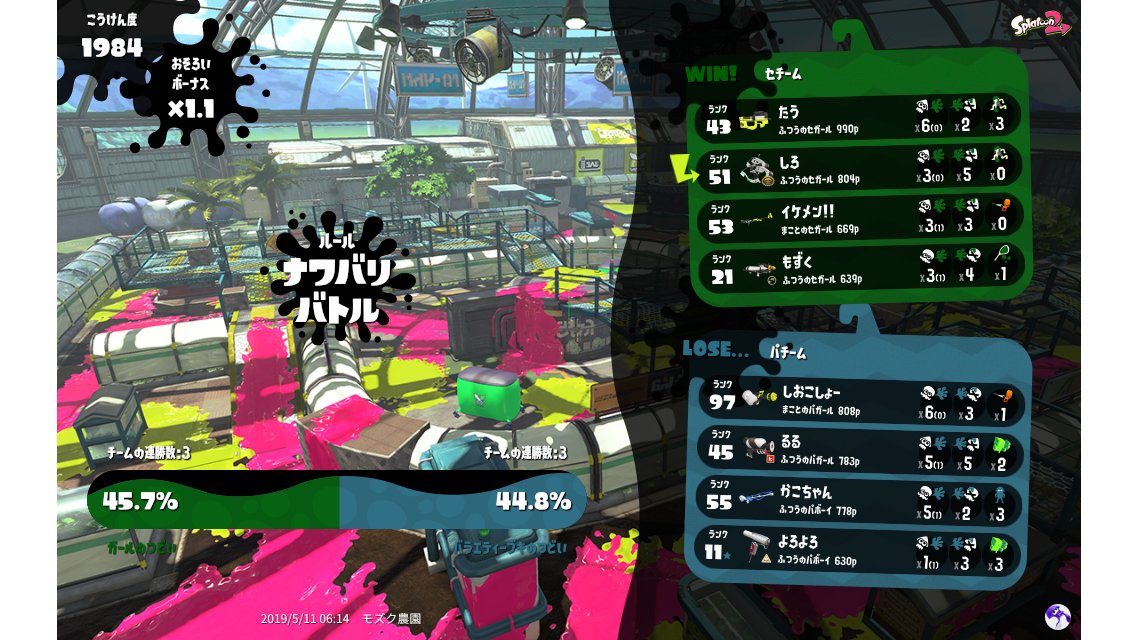| Team パ バラエティーブキのつどい Win Streak: 3 | 2,999 | 14 / 13 | 1.08 51.85% | ||||